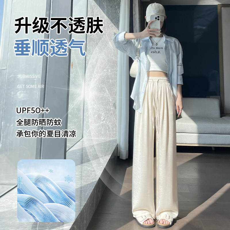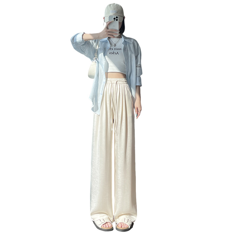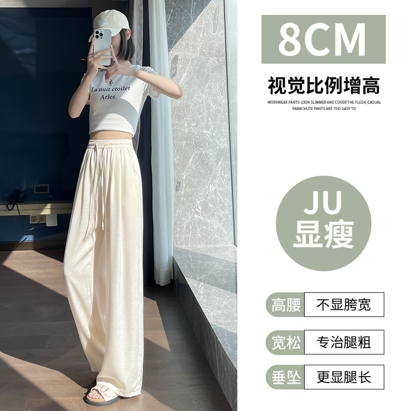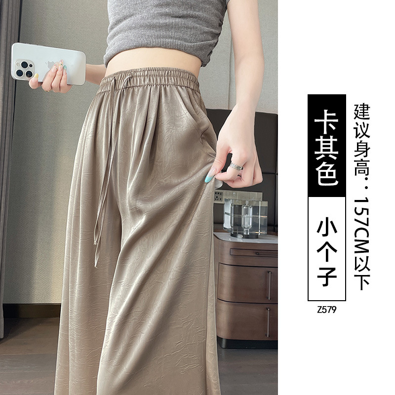 杏色新中式国风裤子女夏季2025新款垂感高级感慵懒风小个子阔腿裤
