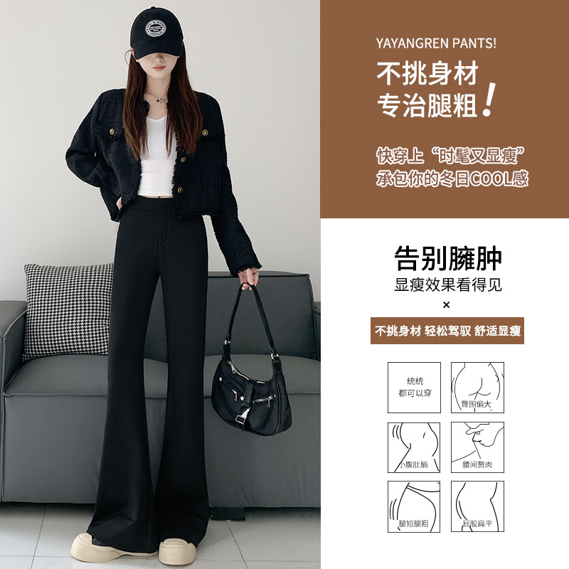黑色喇叭裤女春秋2025新款高腰显瘦高级感垂感夏季西装开叉微喇裤