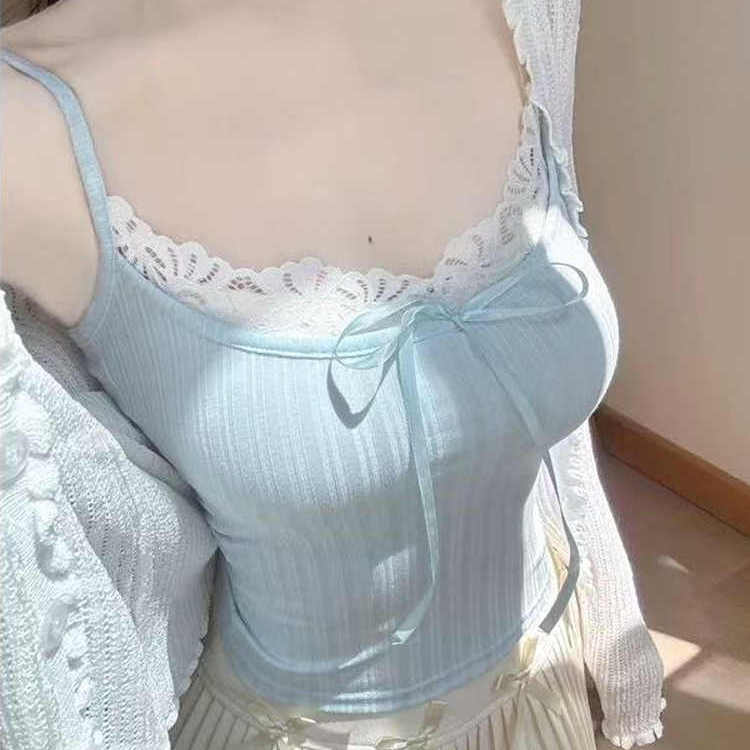 法式拼接蕾丝纯欲系带辣妹打底背心女春季新款防走光吊带夏装上衣