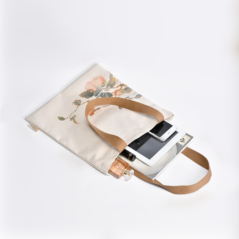 - 杏色 林椿 海棠图 有拉链有内袋