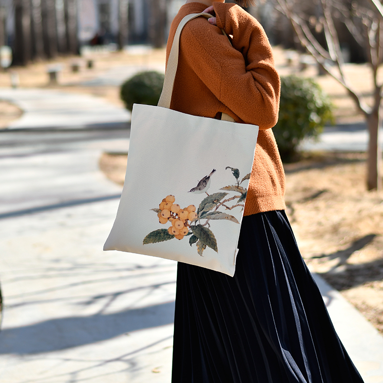 中国故宫文化枇杷山鸟图果熟来禽图帆布包 民族风 国风帆布袋花鸟