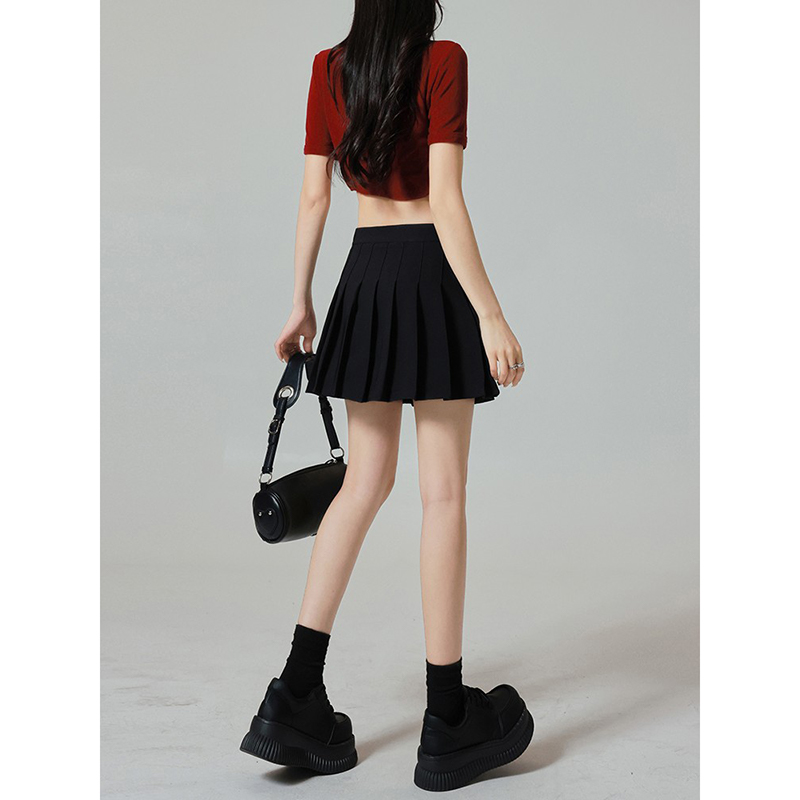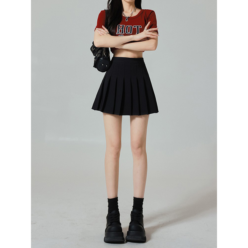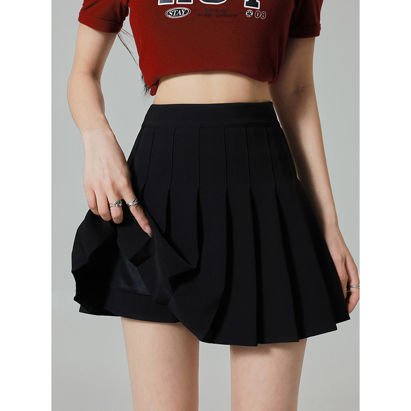 黑色百褶短裙女夏季2025新款高腰显瘦防走光半身裙子