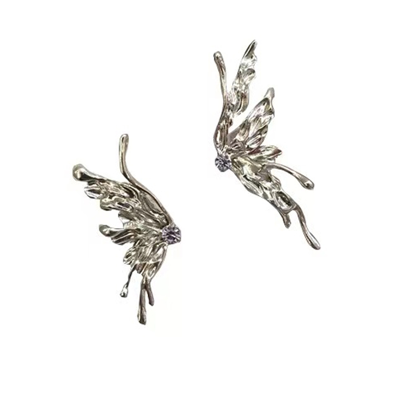 超仙ins冷淡风金属褶皱高级感精灵流苏链条蝴蝶翅膀耳环耳饰耳钉