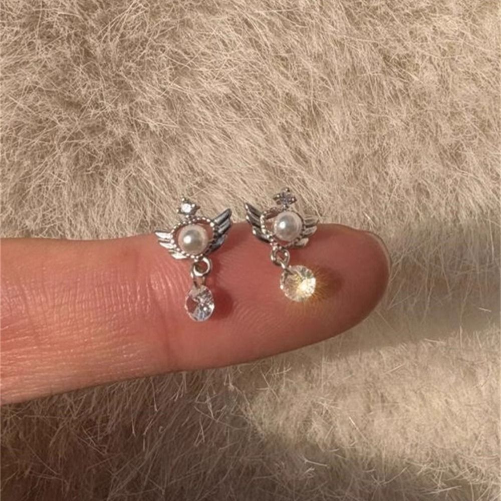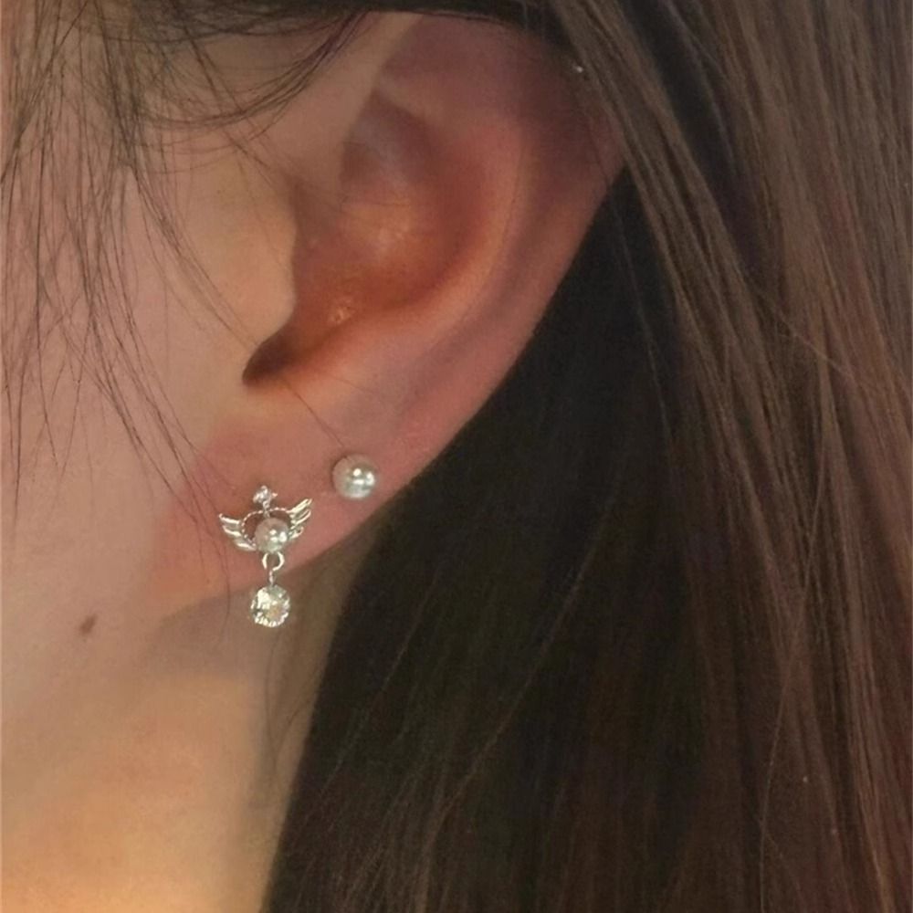 爱心珍珠天使翅膀耳钉女2025新款防过敏耳骨钉养耳洞睡觉免摘耳环