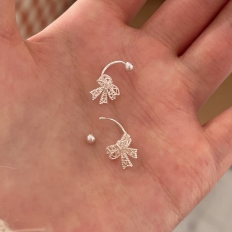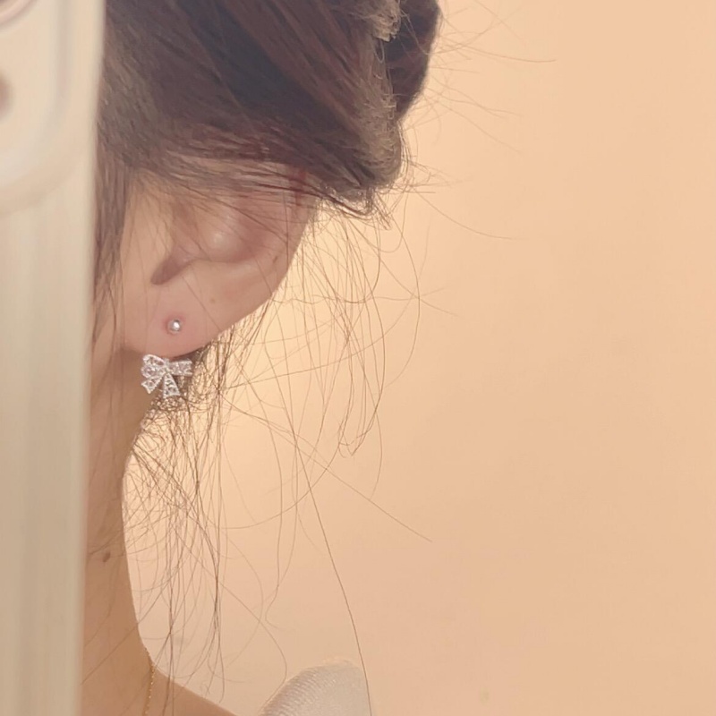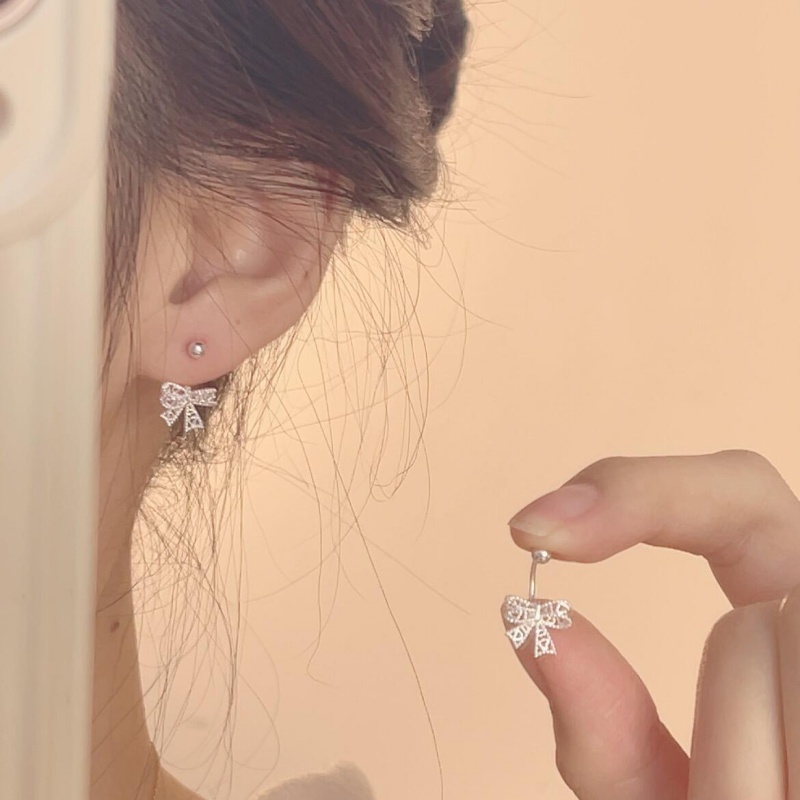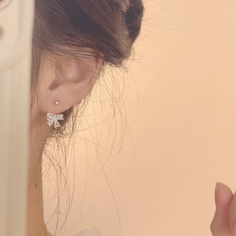 925纯银镂空蝴蝶结耳钉2025爆款轻奢高级感耳环女螺丝拧防丢耳饰