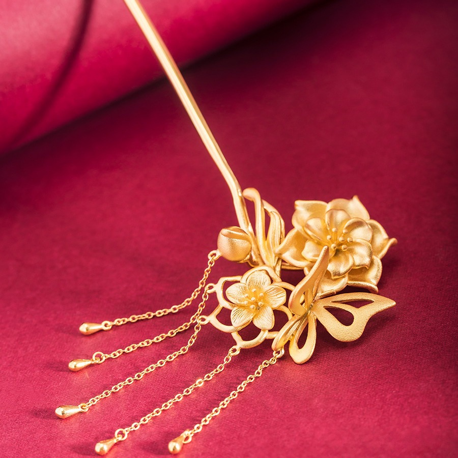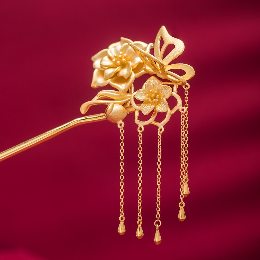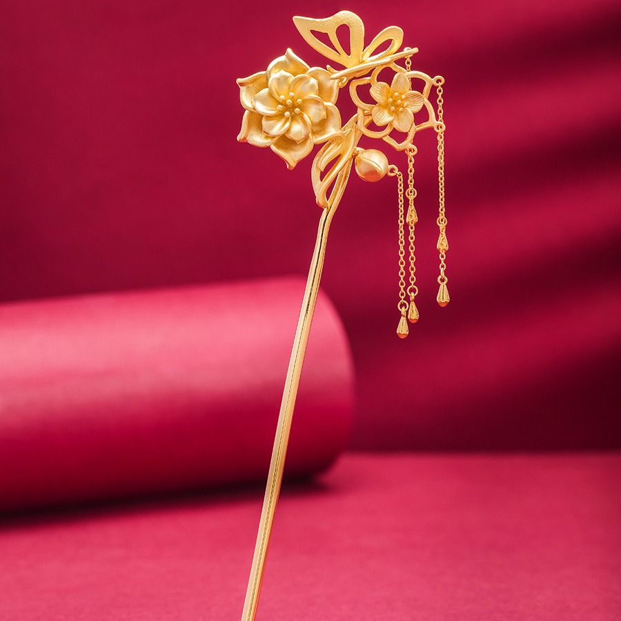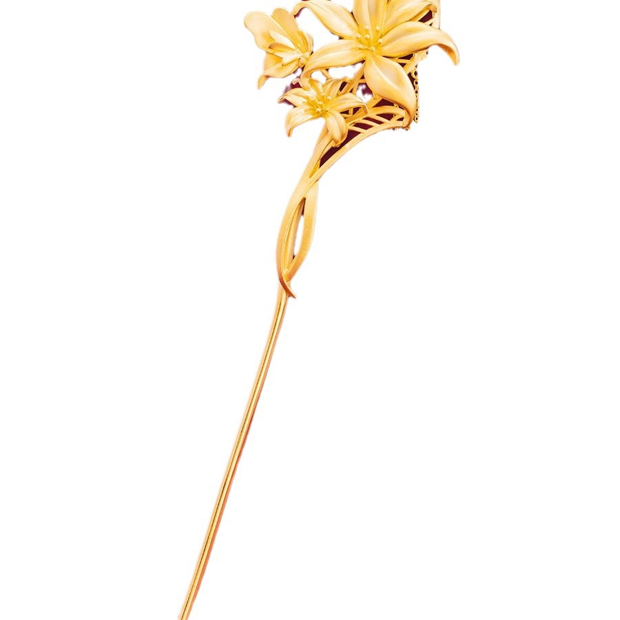 百年好合纯银镀金百合花发簪女古风旗袍婚庆敬酒头饰中式簪子