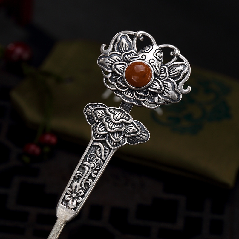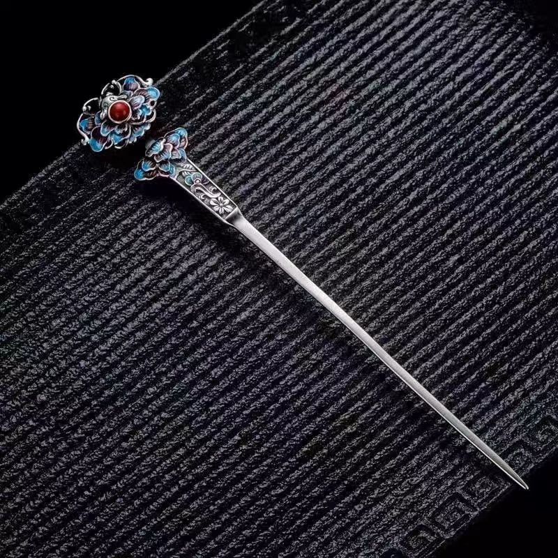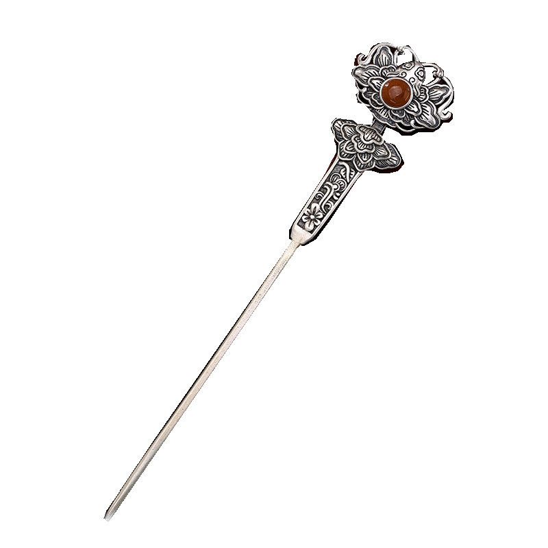 原创如卿S925纯银发簪子牡丹发钗复古装宫廷中国风发饰礼品女