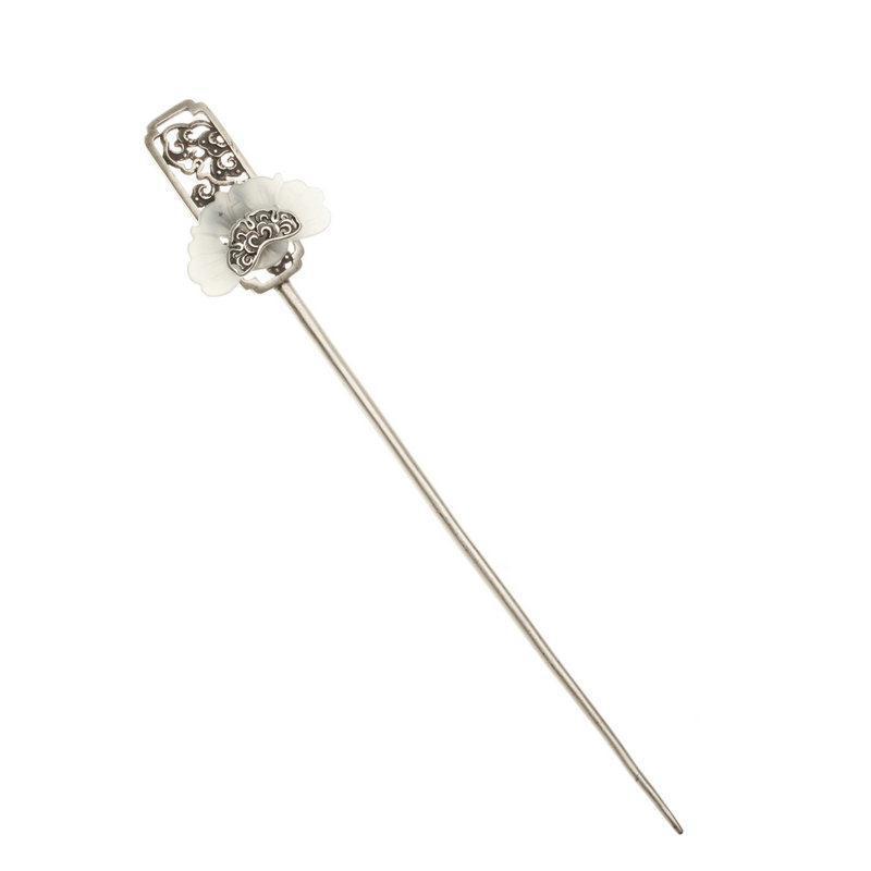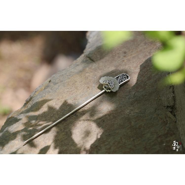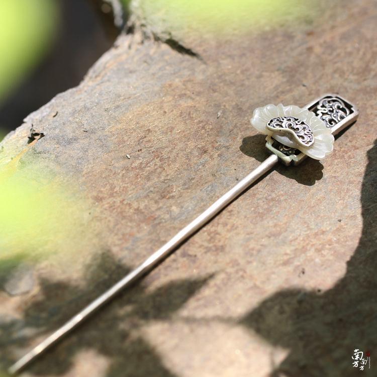 S925银女款时尚气质民族风和田玉蝶恋花长短款如意发簪