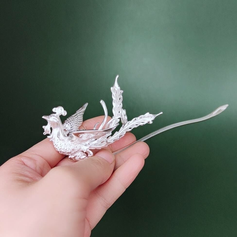 凤钗原创个性设计纯手工艺s925凤凰簪发簪盘发银镀金凤簪汉服