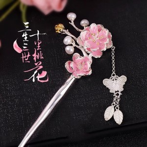 S925银发簪简约气质汉服古装步摇荷花藤蔓蝴蝶复古风头饰钗子