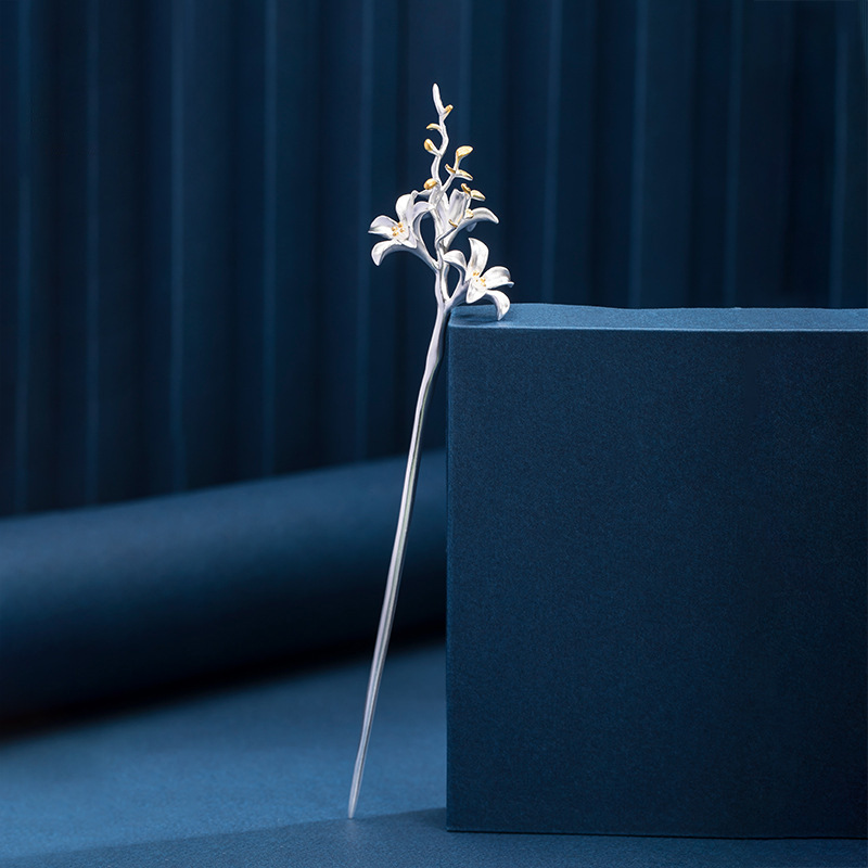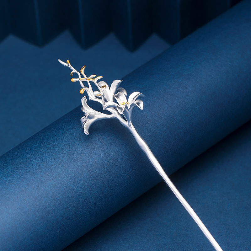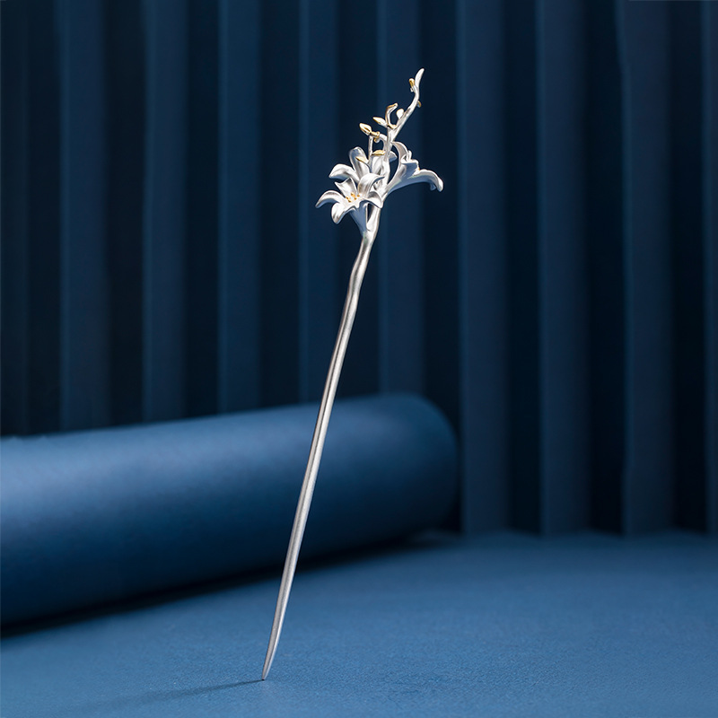 原创设计纯银百合花发簪女古风汉服旗袍头饰气质簪子