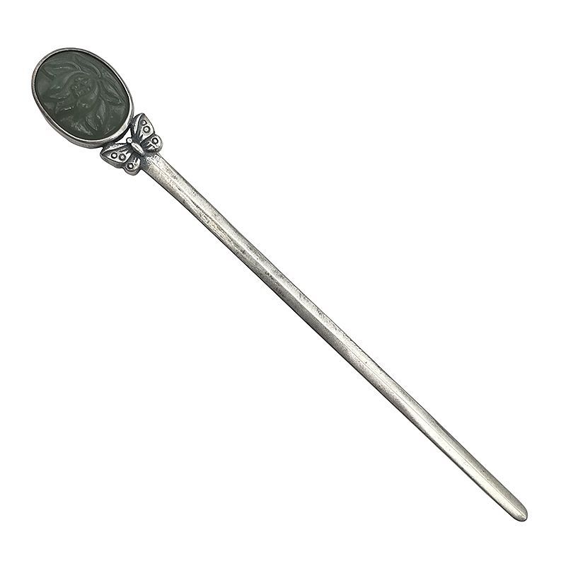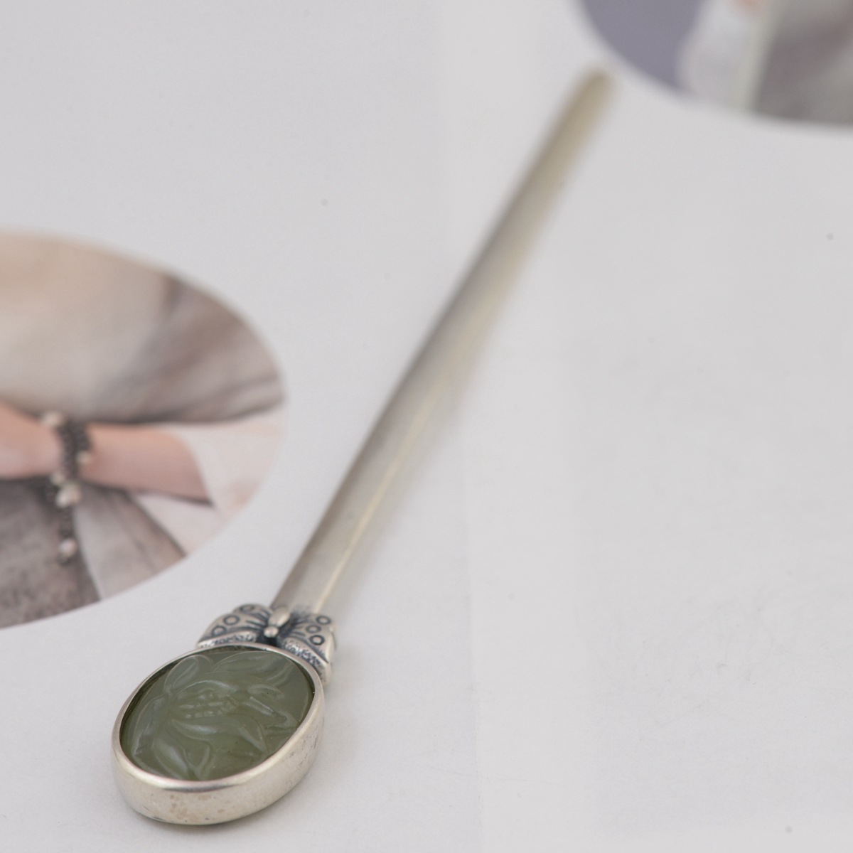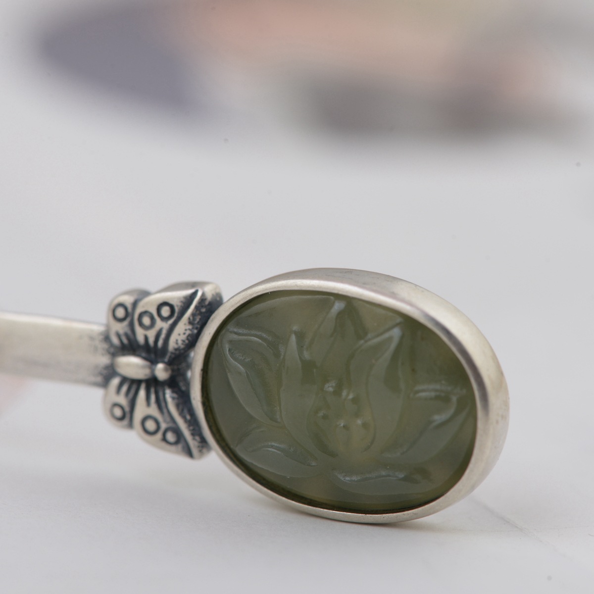 和田玉莲花发簪S925银复古工艺批发女士国潮发钗女款银簪子古风