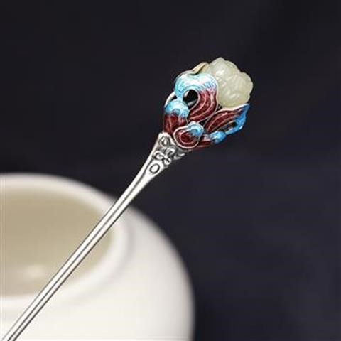 s925通体纯银和田莲花发簪国潮古风汉服旗袍盘发簪子礼物