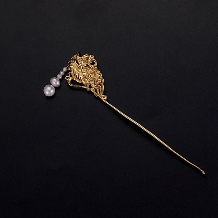 汉服首饰盘发流苏宫廷国风古装纯银鎏金古典发钗