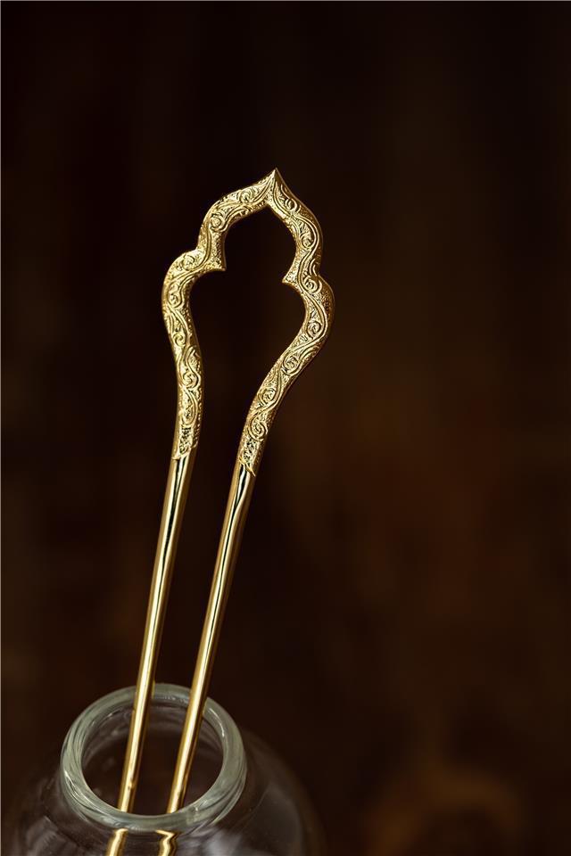 纯铜溯源中兴头饰唐风双面錾花葫芦形发钗新娘步摇汉服发簪子配饰