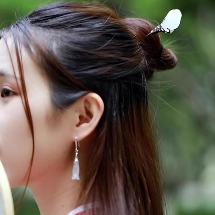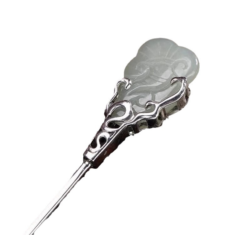 中国祥云发簪女镀银古风簪子复古一字发钗古装头饰盘发首饰
