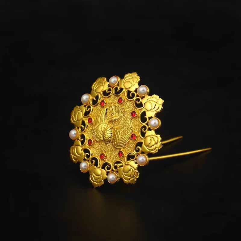 发簪雀钿汉服古风盘发发饰纯铜镀金簪子 宫廷风首饰饰品头饰女