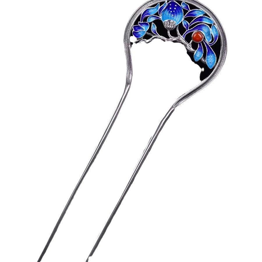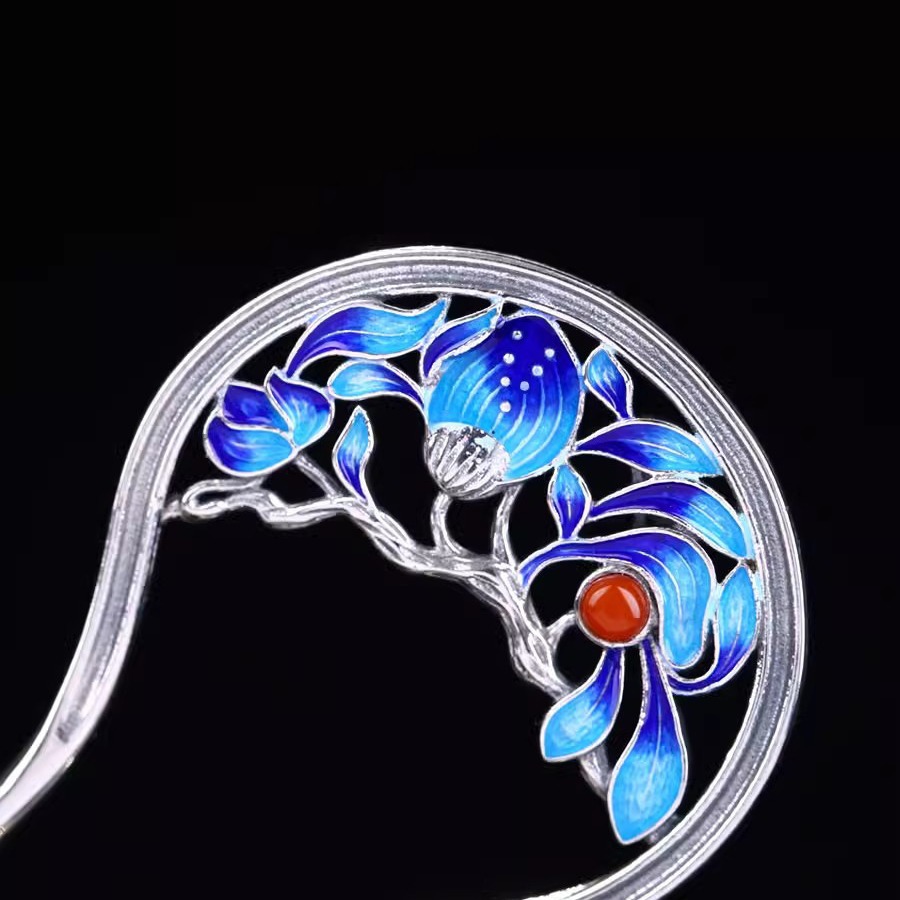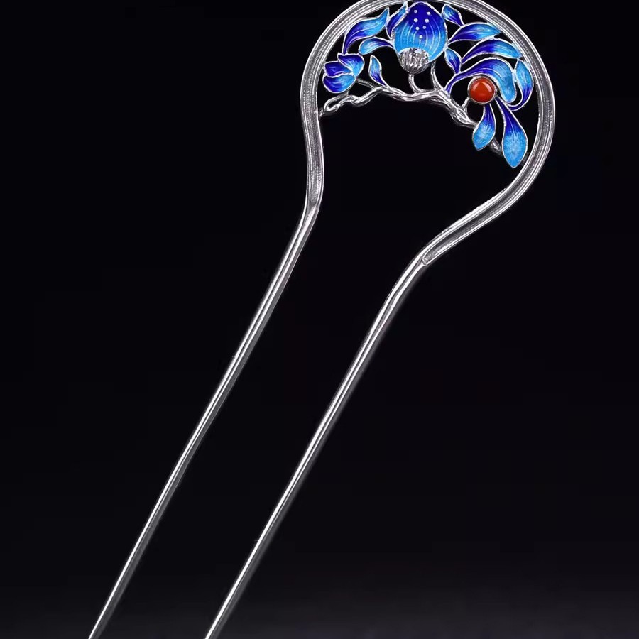 新款S925银镶珐琅工艺女款时尚民族风银古装汉服批发发簪女