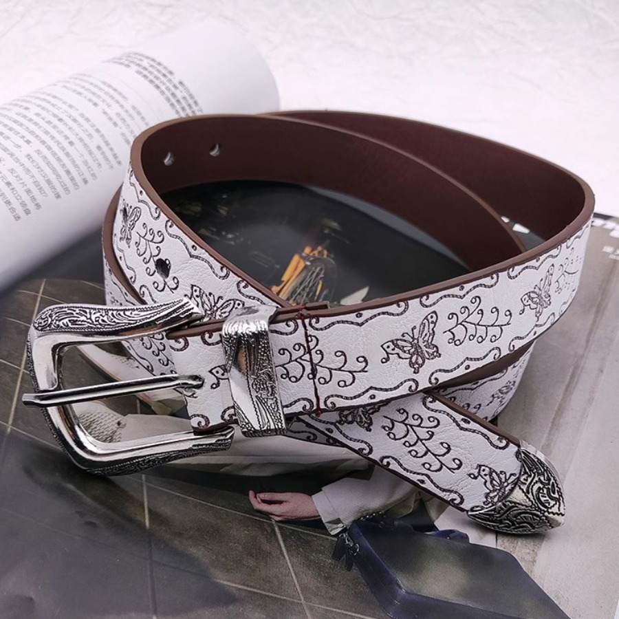 美式压花复古y2k白色腰带女新款搭配配饰裤带皮带设计感小众