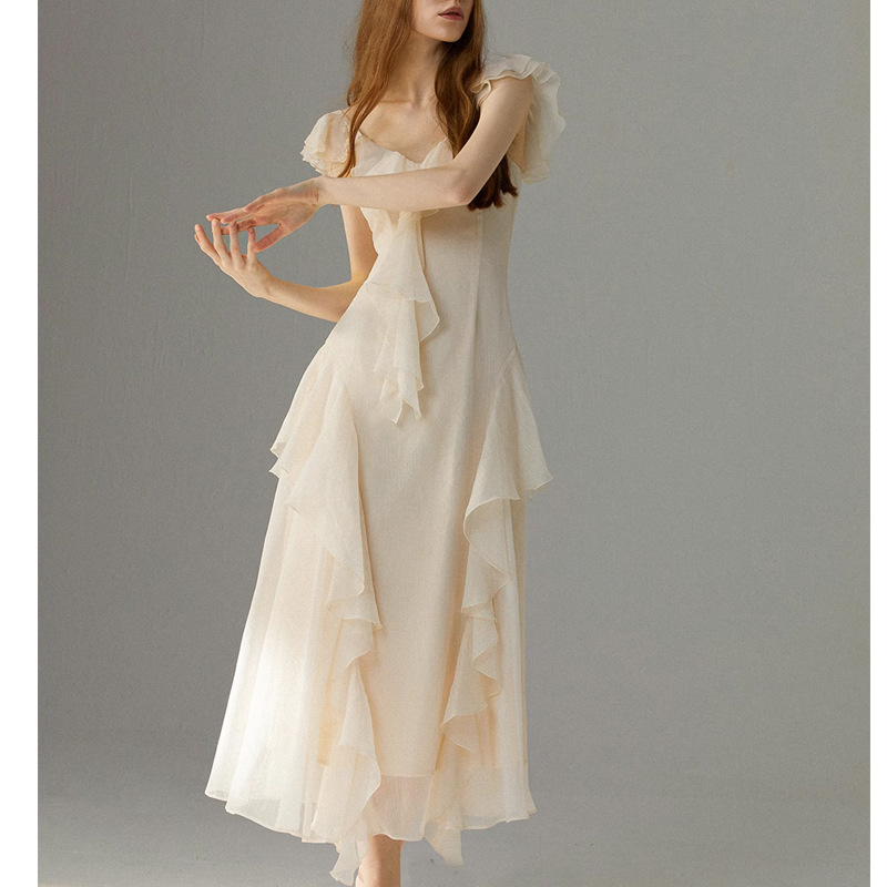 白色法式连衣裙荷叶边仙女风裙子海边度假长裙吊带裙女