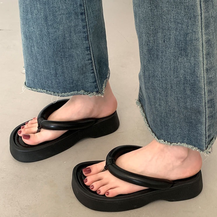 黑色厚底增高人字拖鞋女新款夏季外穿防滑简约百搭沙滩凉拖鞋
