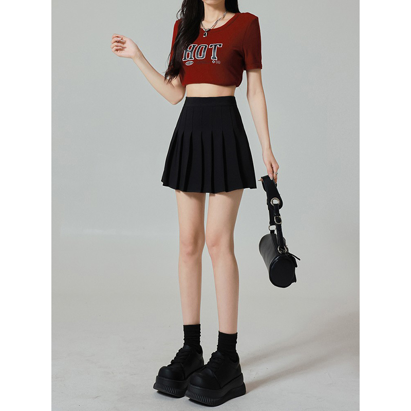 黑色百褶短裙女夏季2025新款高腰显瘦防走光半身裙子