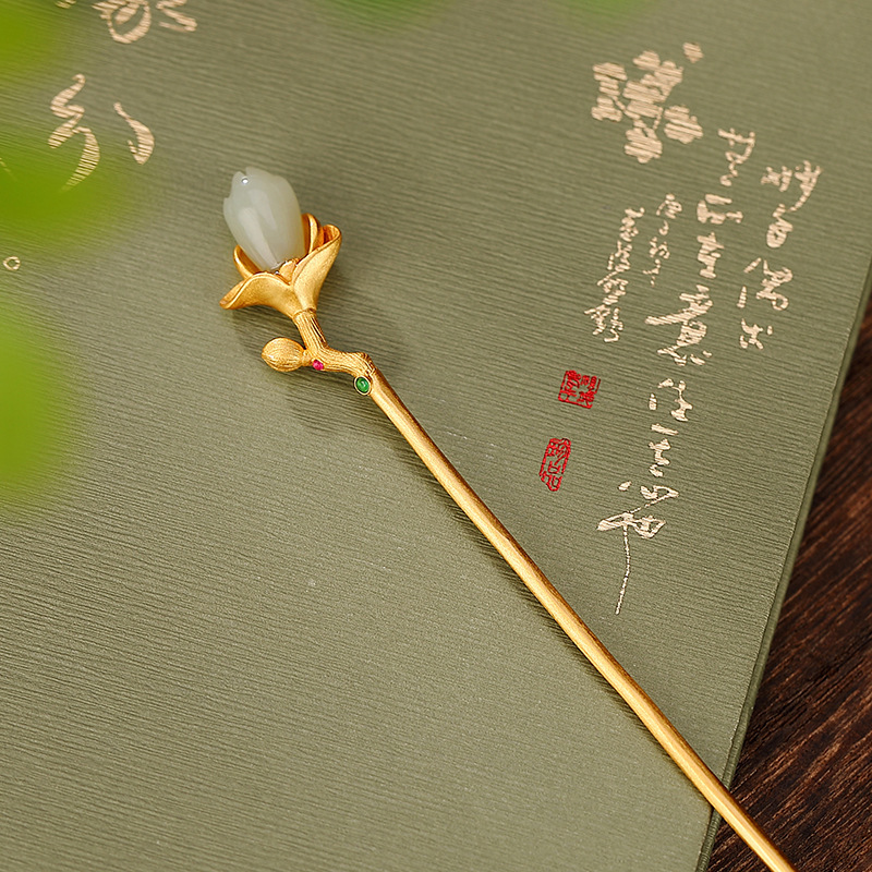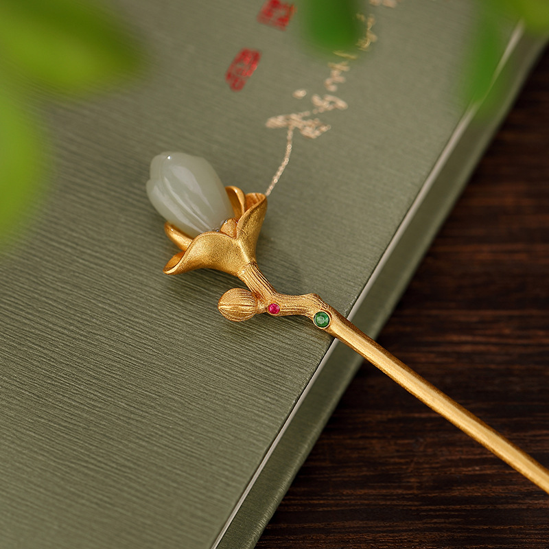 金枝玉兰发簪古法金复古玉兰花个性气质女盘发簪古装汉服旗袍发钗