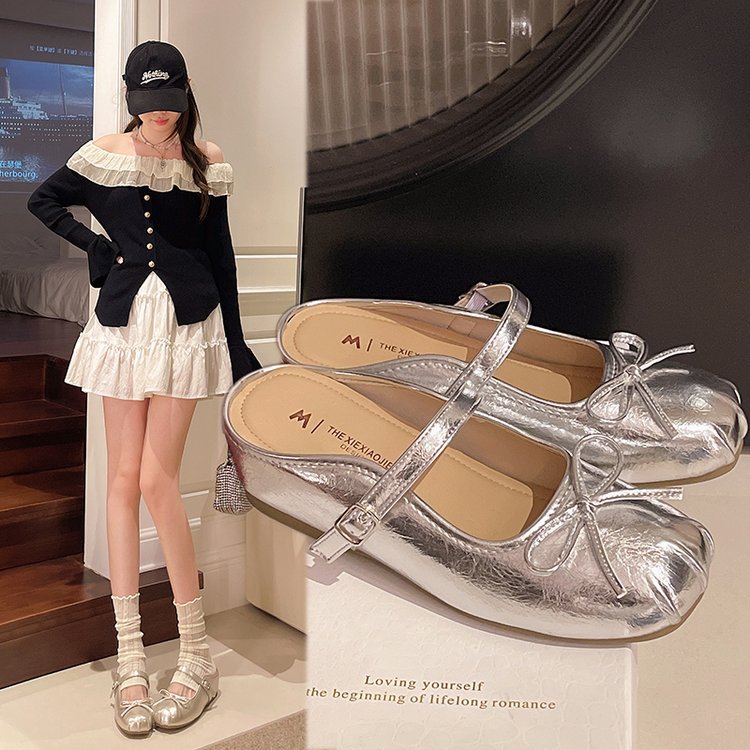法式银色包头半拖鞋女夏外穿2025新款一脚蹬内增高单鞋绝美凉拖鞋