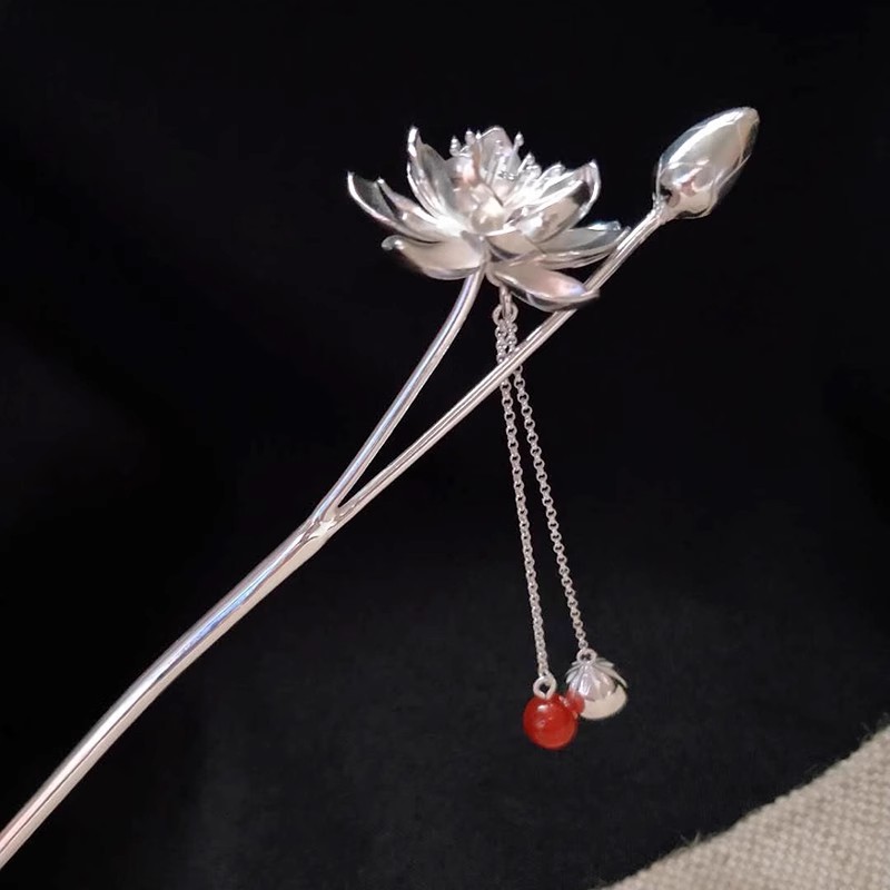 清荷925纯银莲花发簪子古风步摇汉服头饰盘发钗七夕生日礼品