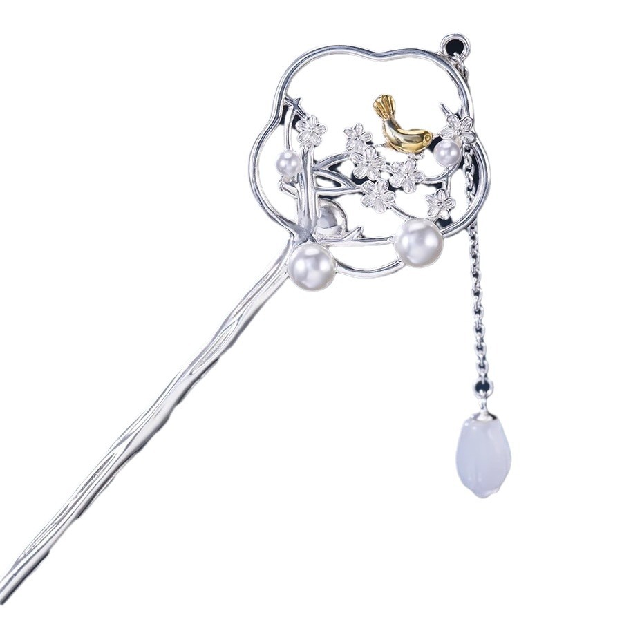 【喜上眉梢】原创纯银和田玉发簪女古风汉服旗袍流苏喜鹊簪子礼物