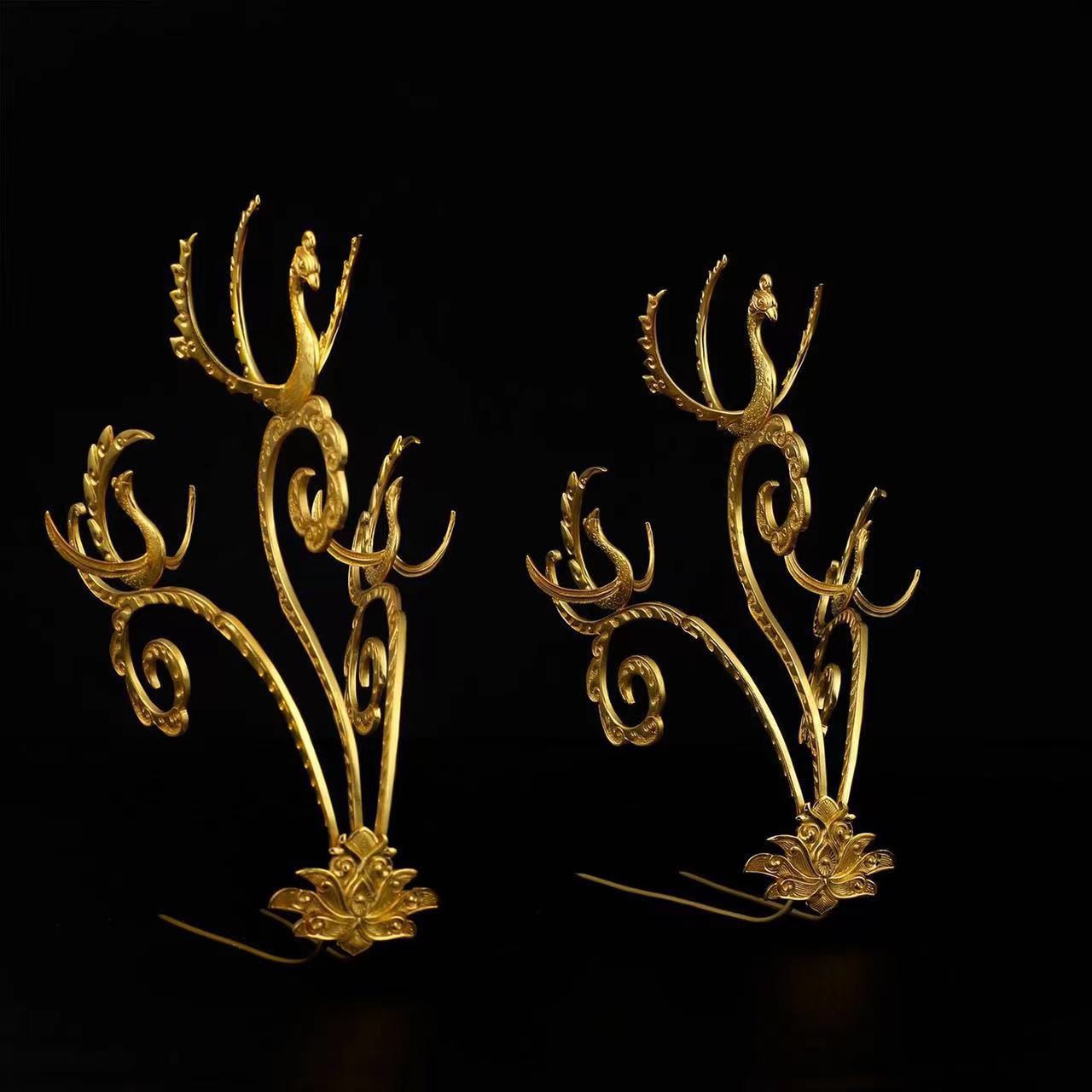 汉服搭配发饰女发簪纯铜镀金朱雀发簪古风头饰簪子发簪款式饰品.