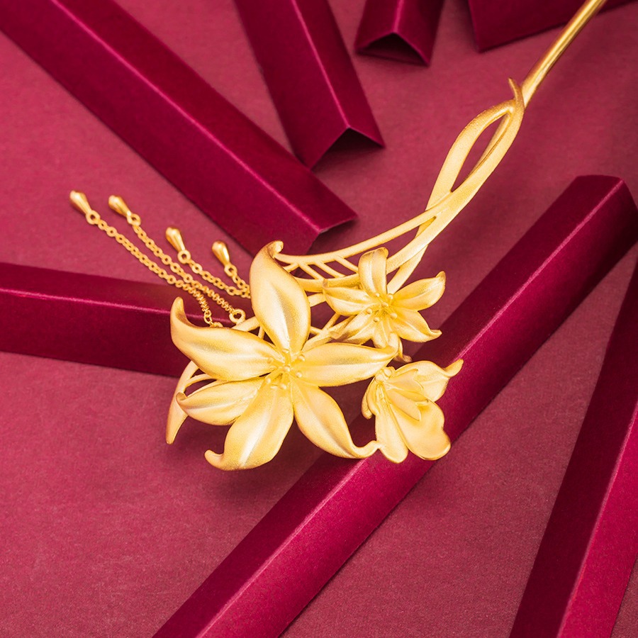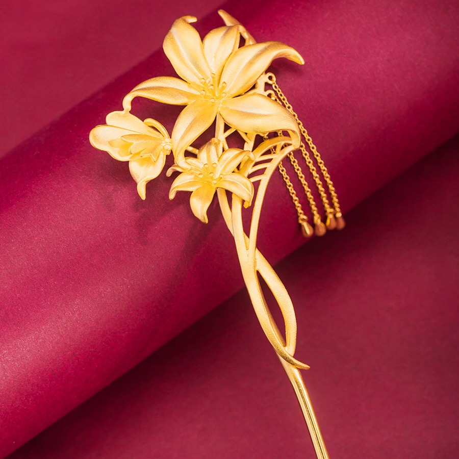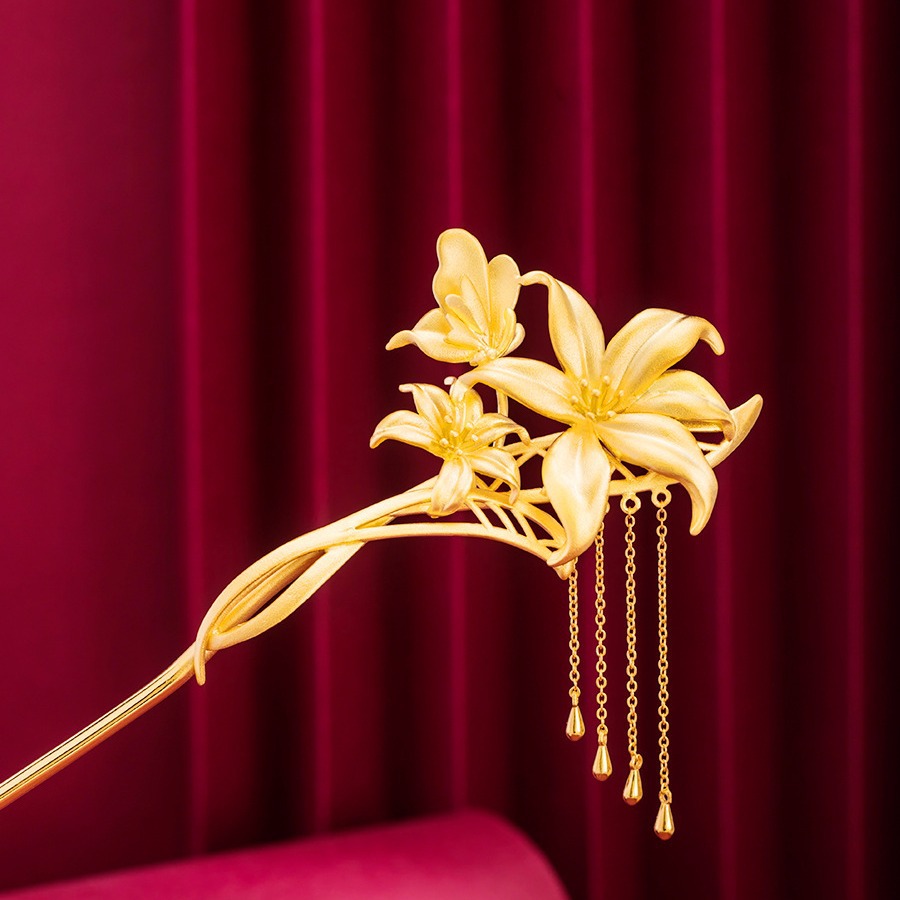 百合花步摇发簪古风流苏汉服盘发旗袍簪子发钗高级感头饰款式饰品