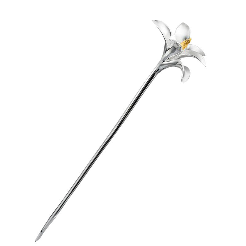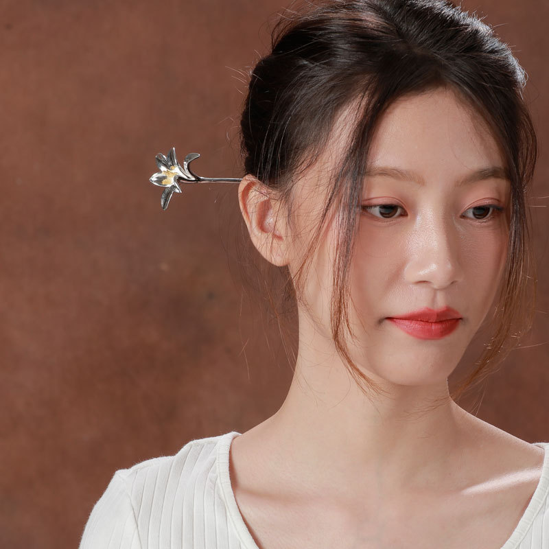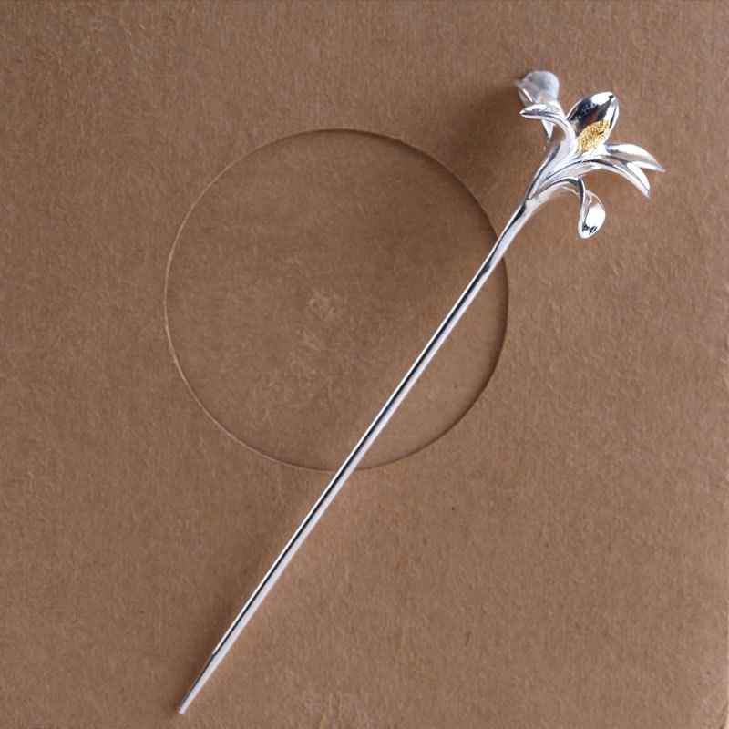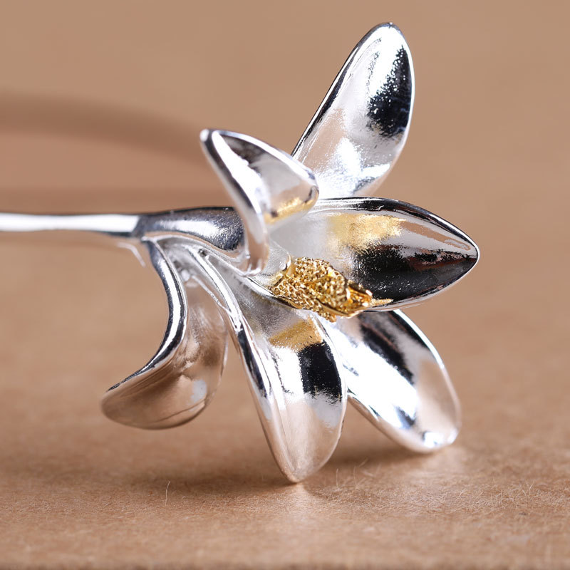 S925银色玉兰花簪镀白金色簪子女古风汉服古代的点缀简约簪子发钗