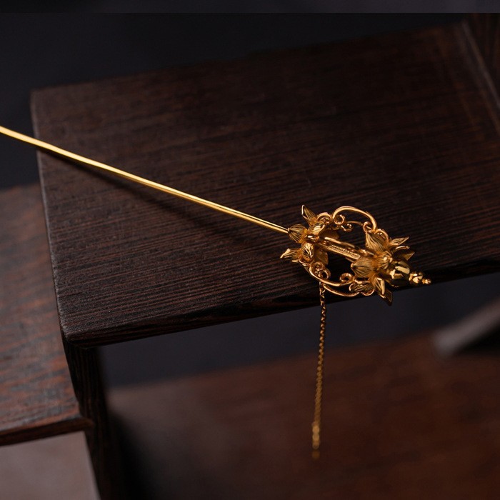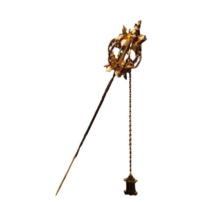 汉服配饰纯银镀金明制狄髻宫廷风步摇发簪子发钗.九环锡杖