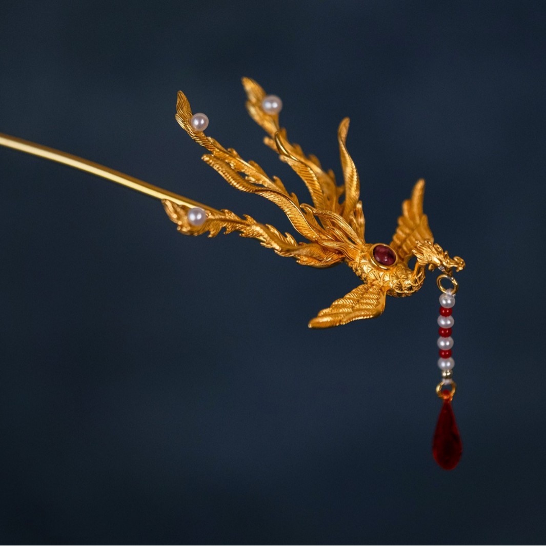 镀金珍珠凤钗步摇颤颤发簪唐风发簪簪子金色发簪汉服秀禾发饰