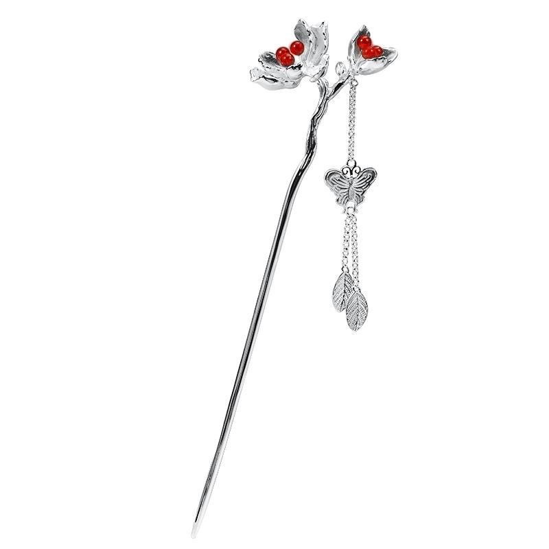 s925纯银石榴石发簪子花朵复古装宫廷汉服配饰头饰唯美女520礼物