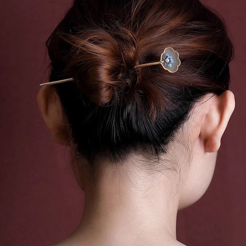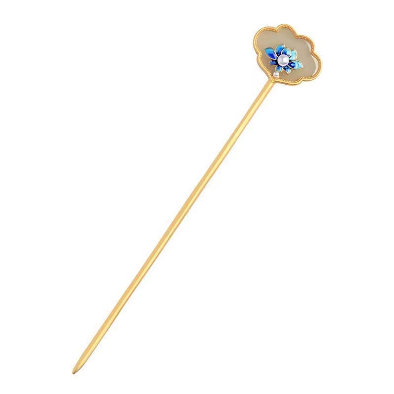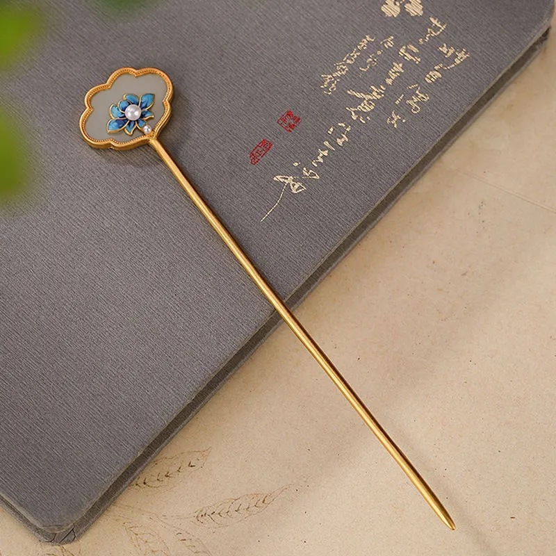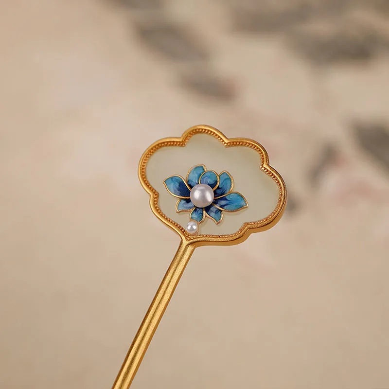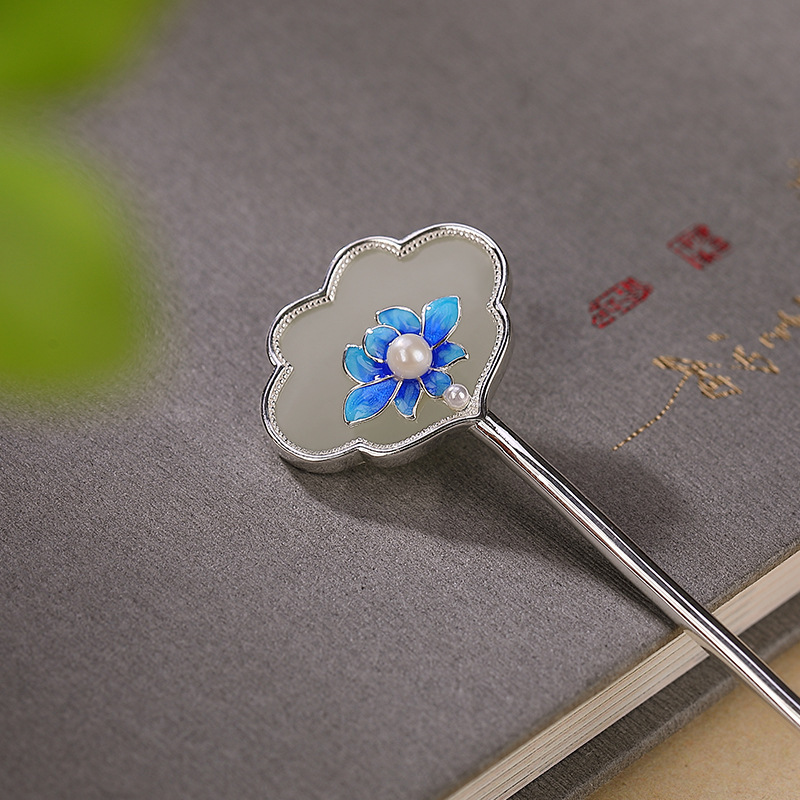 S925纯银莲花珍珠发簪女款简约复古精美个性气质石头发钗发饰