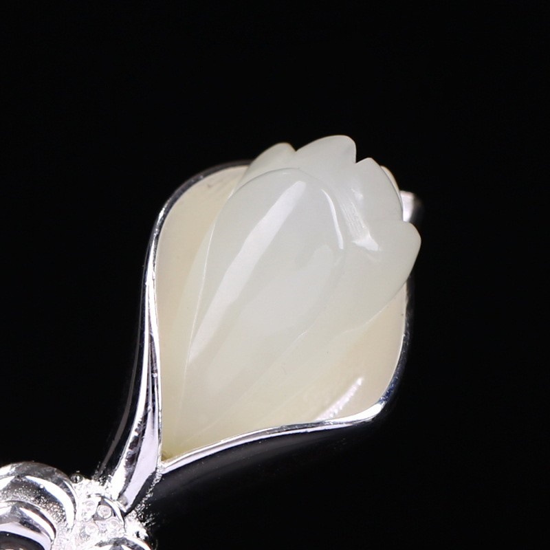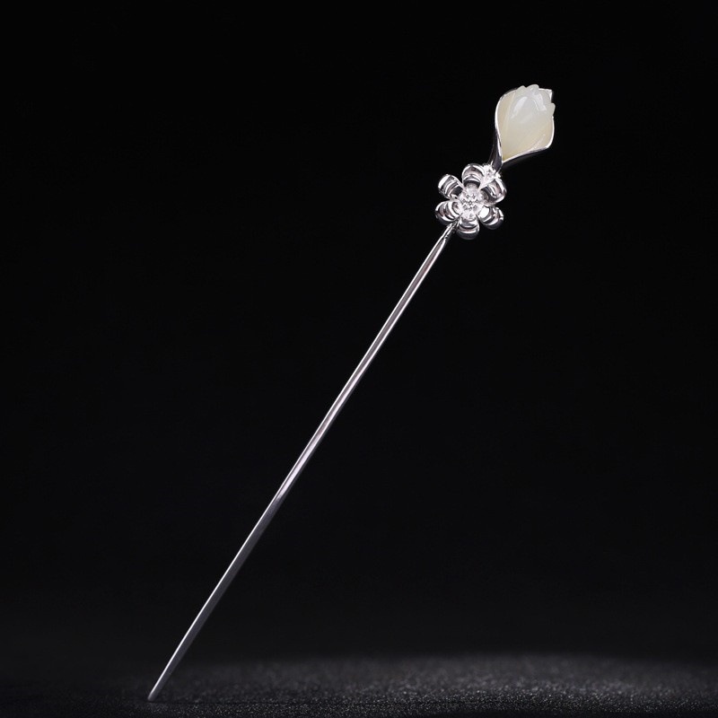 手工纯银和田玉发簪女玉兰花汉服复古风盘发单素簪子情人节礼物