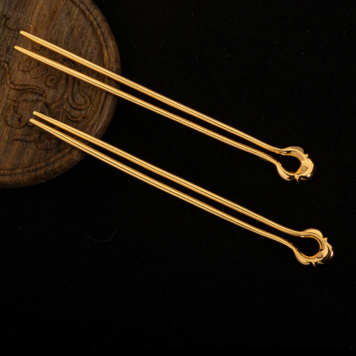 汉服首饰镀金发簪唐制古典发钗步摇双菱古典大气宫廷简约复古发饰