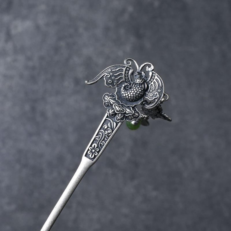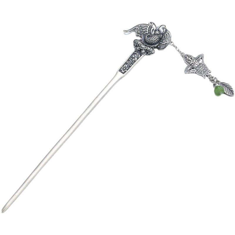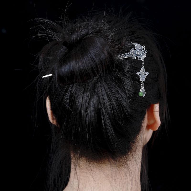 新款化蝶发簪女镀银流苏复古民族风簪子古装汉服发钗发饰头饰