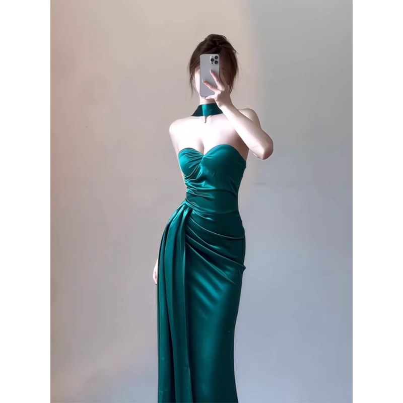 生日裙子高级感晚礼服高端轻奢小众敬酒服名媛缎面抹胸挂脖连衣裙