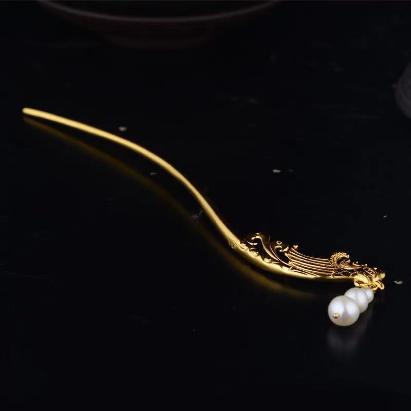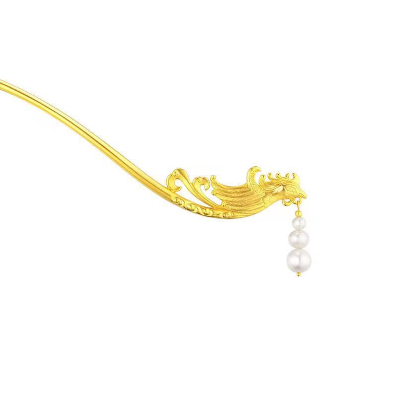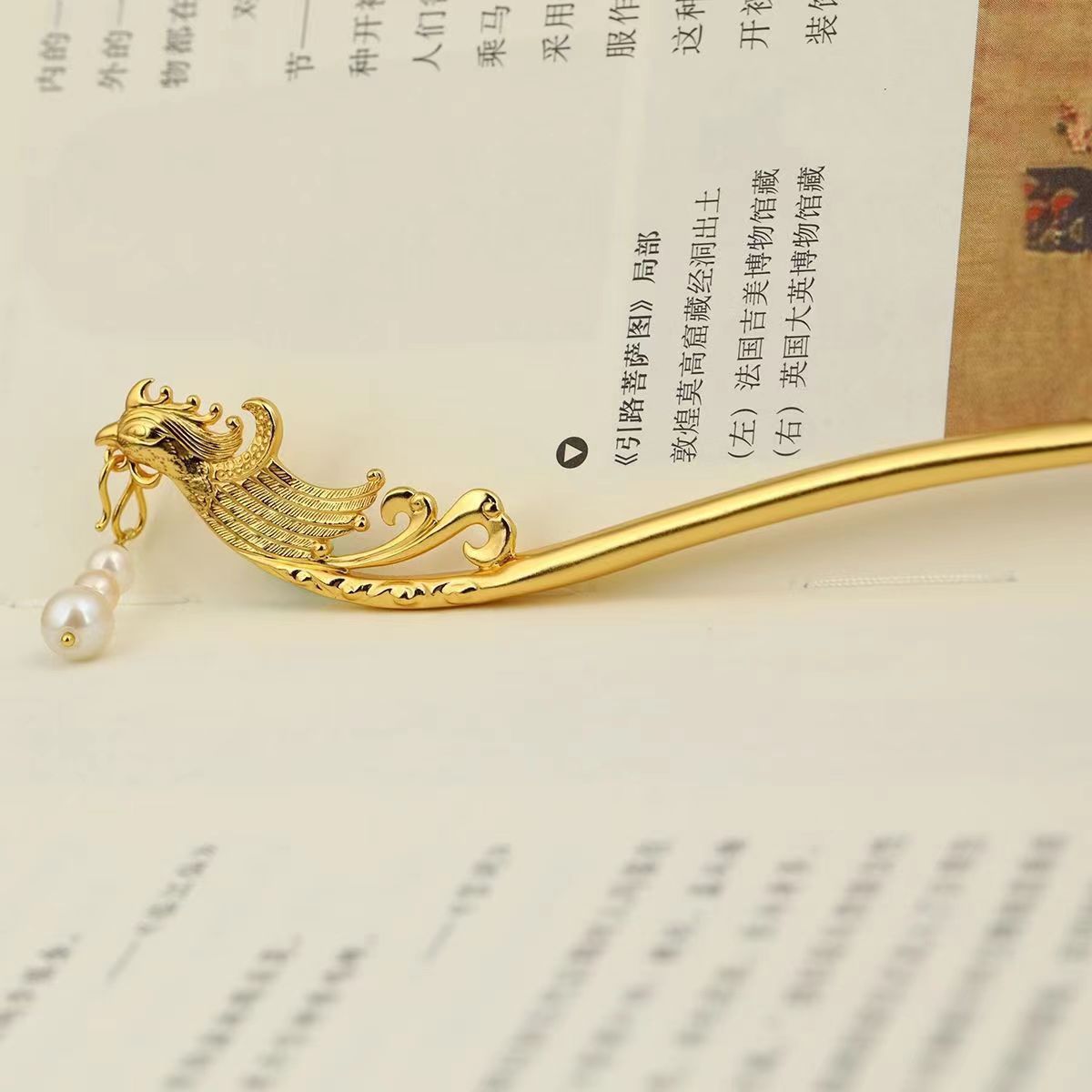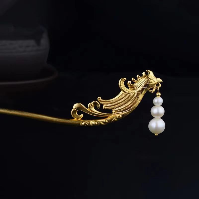 直播复古国潮铜镀金汉服配饰錾刻云纹盘发凤首凤头簪子鸢歌流苏坠