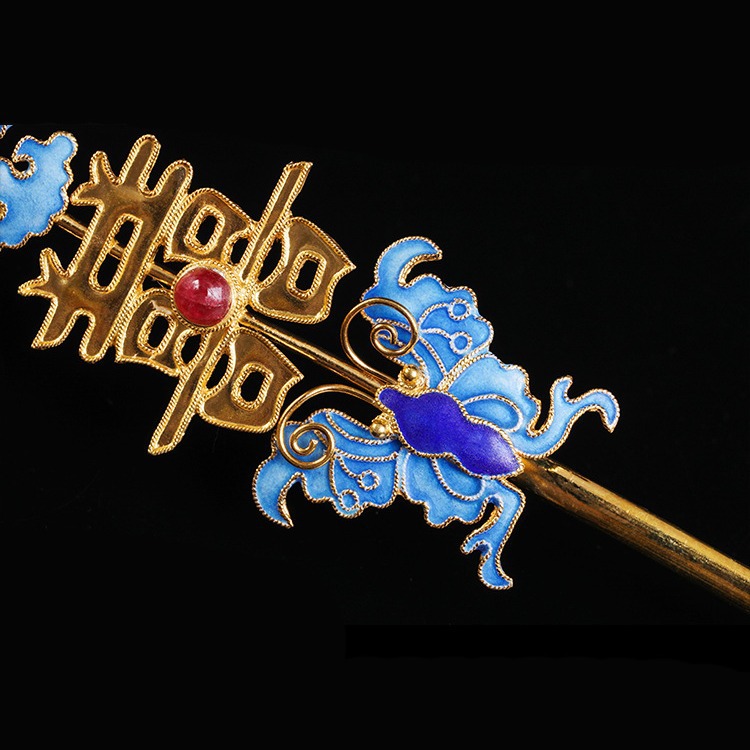 优雅品牌珐琅旗袍配饰优雅国风古玉石景泰蓝古装汉服发簪