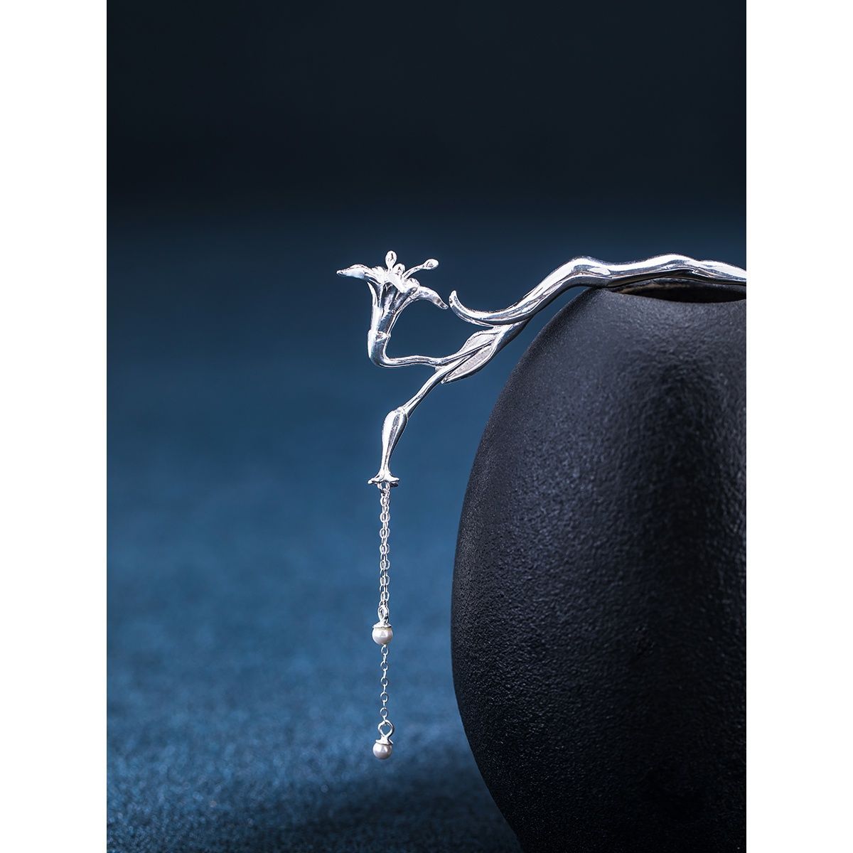 镀白金色野百合发簪女古风汉服头饰宫廷气质中国风流苏簪子发钗礼