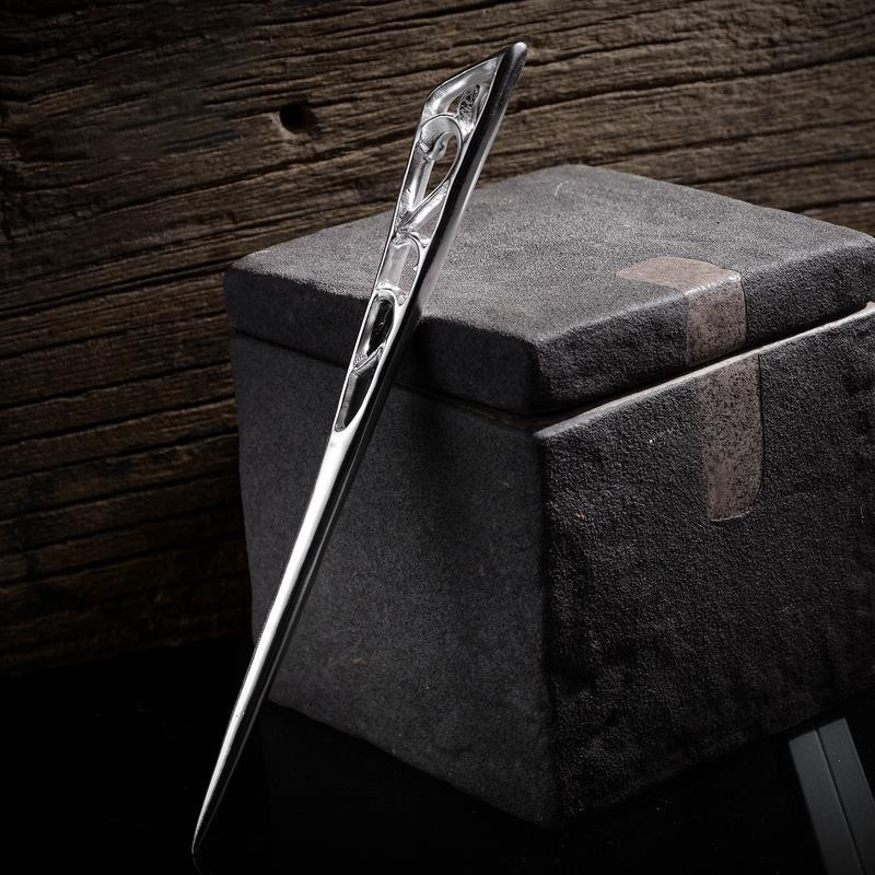 S925银簪子手工古典檀纯银发簪汉服复古配饰盘发钗唐草古典步摇