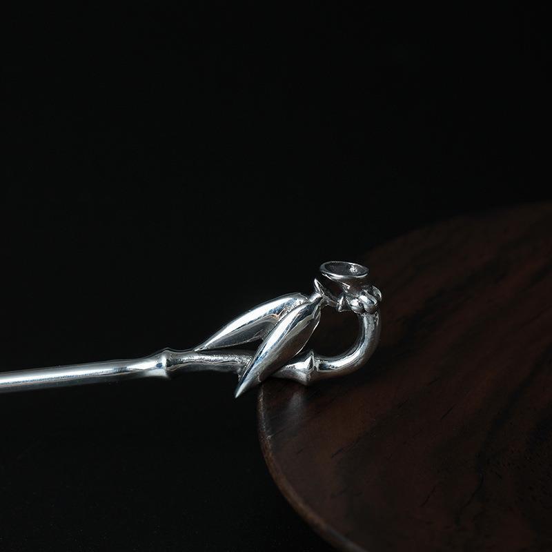 纯银发簪古典头饰品女宫廷女款竹子发钗步摇气质民族风发叉礼