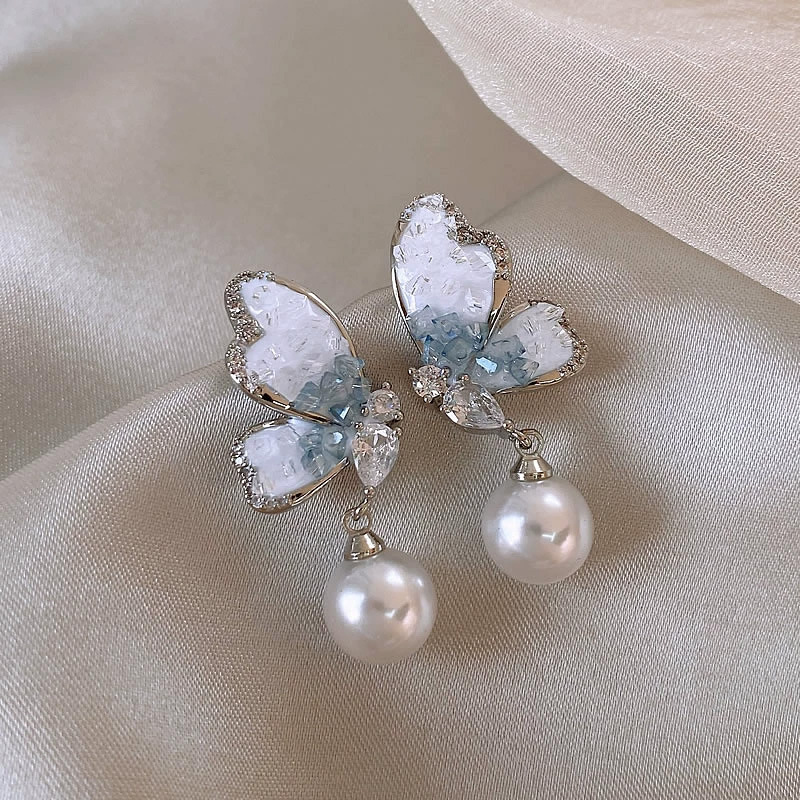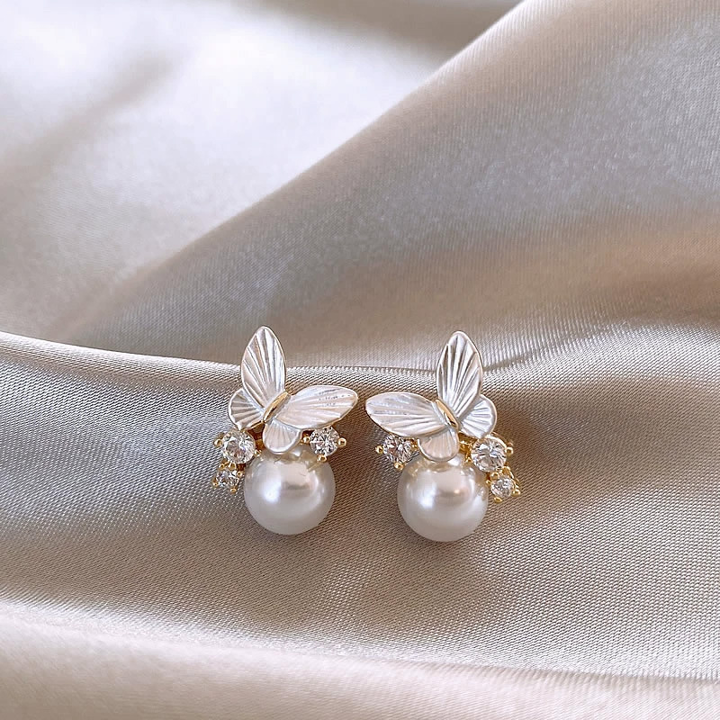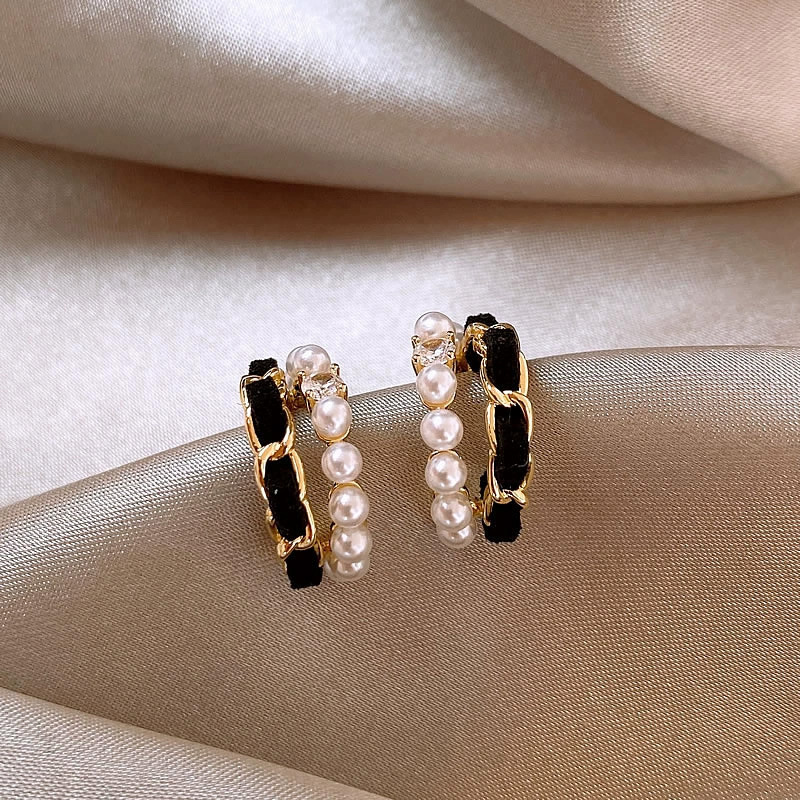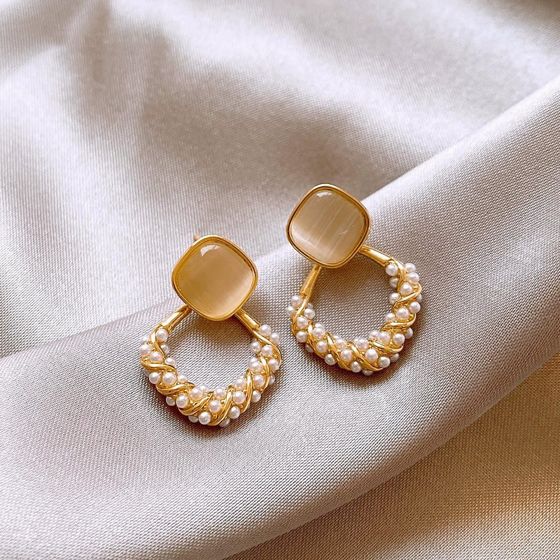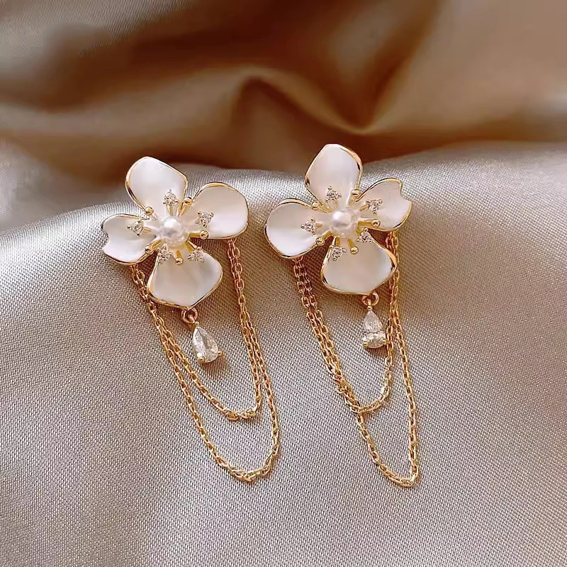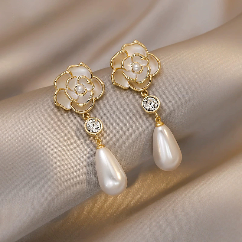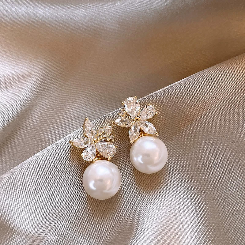 银针高级感珍珠花朵耳环时尚复古轻奢耳坠法式优雅气质网红耳饰女
