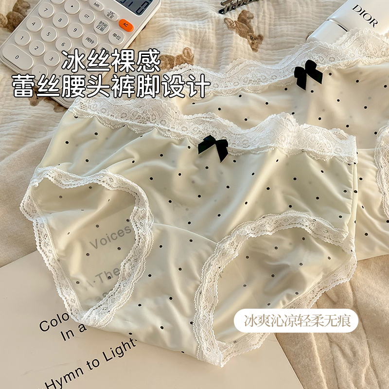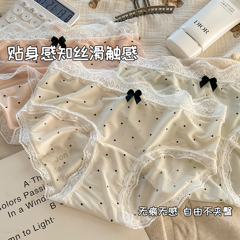 法式复古波点冰丝少女内裤性感蕾丝抗菌裆无痕甜美学生女士三角裤