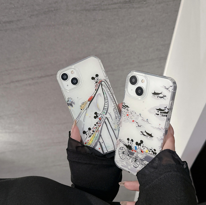 卡通米奇米妮水墨画适用15/14ProMax手机壳苹果13双层12/11防摔女