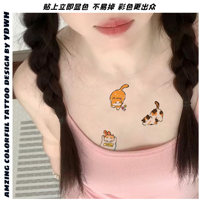 可爱小猫 纹身贴防水女持久彩绘小图风贴纸2025新款遮疤